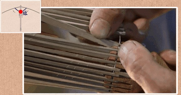 这几步结束后,就有了最基本的开合结构,但是,每根竹条间的距离还没有确定,这时,师傅会用到一个名叫“折子”的工具。