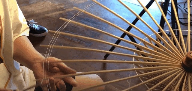 一方面,加固了油纸伞的结构,一方面,五颜六色的棉线搭配,也让油纸伞美观了不少,像我,就很喜欢看油纸伞打开时,那美丽的满穿~