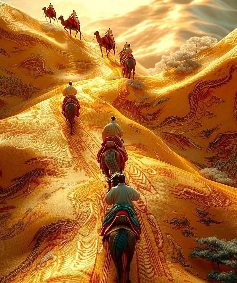 丝绸之路的历史充满了传奇色彩。无数商贾、使节、探险家在这条商路上留下了他们的足迹和故事。有的商贾凭借智慧和勇气,在茫茫沙漠中找到了水源和绿洲;有的使节不畏艰难险阻,成功完成了外交使命;还有的探险家沿着丝绸之路深入未知的世界,发现了许多新奇的物种和地理现象。这些故事不仅丰富了丝绸之路的文化内涵,也激发了人们对未知世界的好奇心和探索欲。
