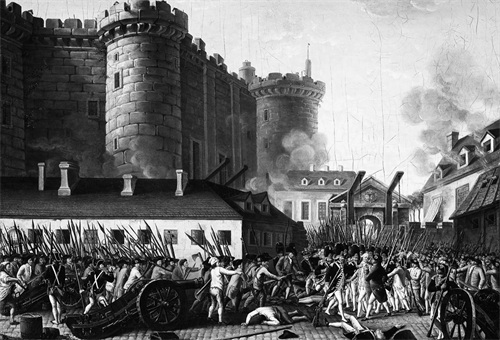 巴士底狱的攻陷:1789年7月14日,巴黎民众攻陷巴士底狱,标志着法国大革命的爆发。巴士底狱象征着王权的压迫,攻陷它不仅是对暴政的反抗,也成为革命精神的象征。这一天后来被定为法国国庆日。