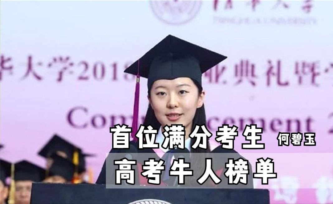第七位、高考满分第一人:2000年7月,年仅14岁半何碧玉以标准分750分的优异成绩一举夺得河南省高考理工科“状元”,被清华大学生物科学与技术系生物科学专业录取,创造了高考历史上的奇迹与神话。