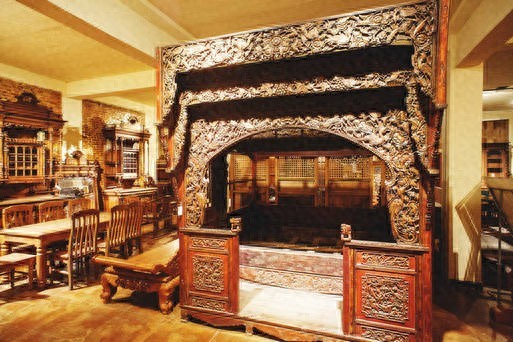 拔步床,又叫八步床,是体型最大的一种床。拔步床在《鲁班经匠家境》中被分别列为“大床”和“凉床”两类,其实是拔步床的繁简两种形式,为明清时期流行的一种大型床。拔步床是中国人在床中的最伟大发明。分为前后两部分,床的前半部称为“拔步”,有雕花柱架、挂落、倚栏、飘檐花罩等;后半部是卧床本体部分,床三面围有拆装式的围板。而且还有床外廊,里面有一个平面叫地平,两侧可以用来放灯柜、马桶或梳妆台等。拔步床的发明,使床成了“屋中之屋,房中之房”,与中国传统起居讲究的明堂暗房不谋而合。