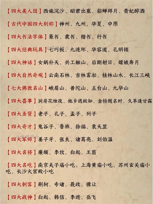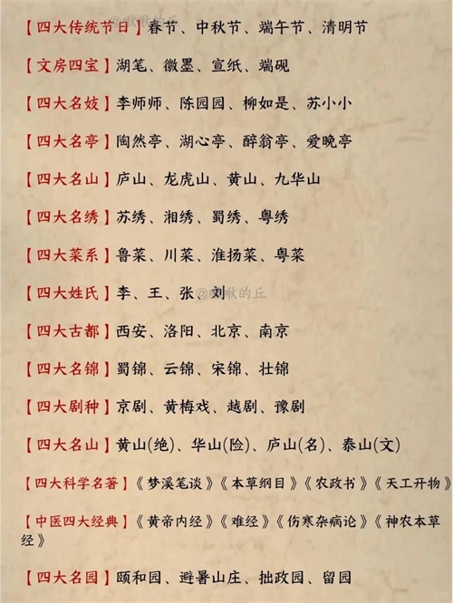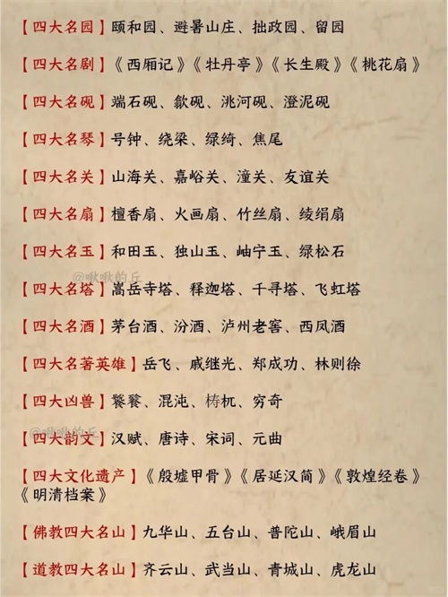在仲国悠久的历史长河中,众多具有代表性的“四大”闪耀着璀璨的光芒。这些“四大”涵盖了建筑、文学、美景、人才等多个领域,不仅凝聚了我国古代劳动人民的智慧结晶,更对仲国乃至世界产生了深远的影响。它们朗朗上口,方便记忆,让我们一同追寻这些历史足迹,感受中华文化的博大精深。