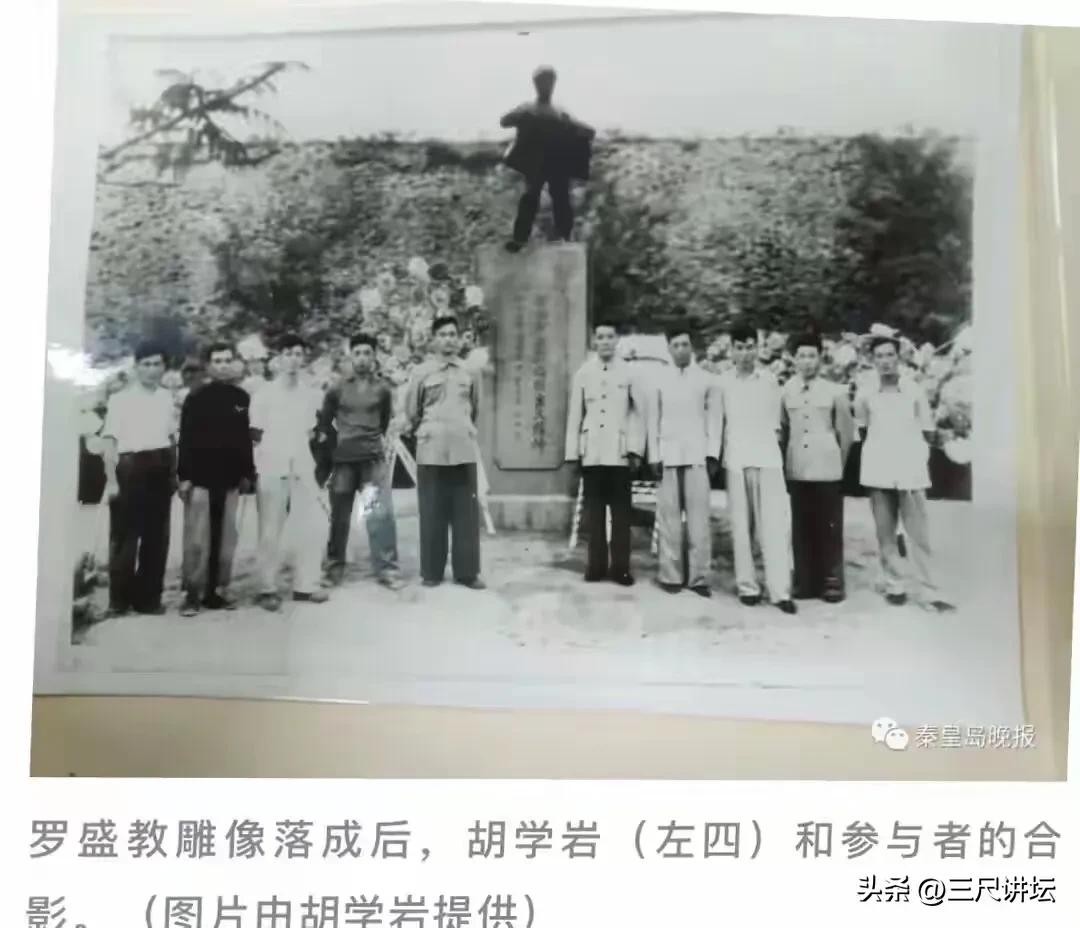 归国前夕,朝鲜师生为感念山海关人民与朝鲜人民之间的深情厚谊,决定在天下第一关瓮城内,建一尊为救朝鲜落水儿童崔莹而牺牲的国际主义战士罗盛教的塑像,并举行祭奠仪式。塑造雕像的重任,落在了刚满20岁的山海关区南街小学美术教师胡学岩和他的老师翁耀光身上。