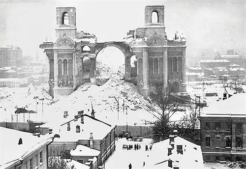 可惜的是,为了要给一个更巨大的工程让位,这座大教堂居然被炸掉了。谁让它站在了莫斯科的东西轴线上,对面就是克里姆林宫?