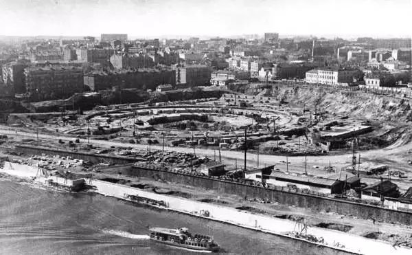 直到1937年,苏维埃宫殿的建设才正式提上日程,预计成本为40亿卢布,相当于1940年苏联国家预算收入的1/4。可惜天不遂人愿,刚刚挖了一部分地基后,莫斯科河的河水就渗入其中,工程被迫暂停。1939年,解决完渗水问题后,人们继续奋斗。