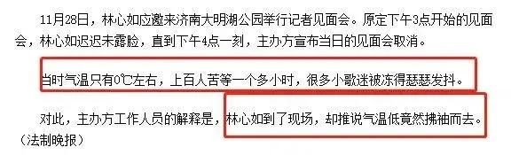 林心如对内地粉丝的无视可不仅仅局限于言语上,她曾把在寒风中苦苦等待了一个小时之久的粉丝弃之不顾!