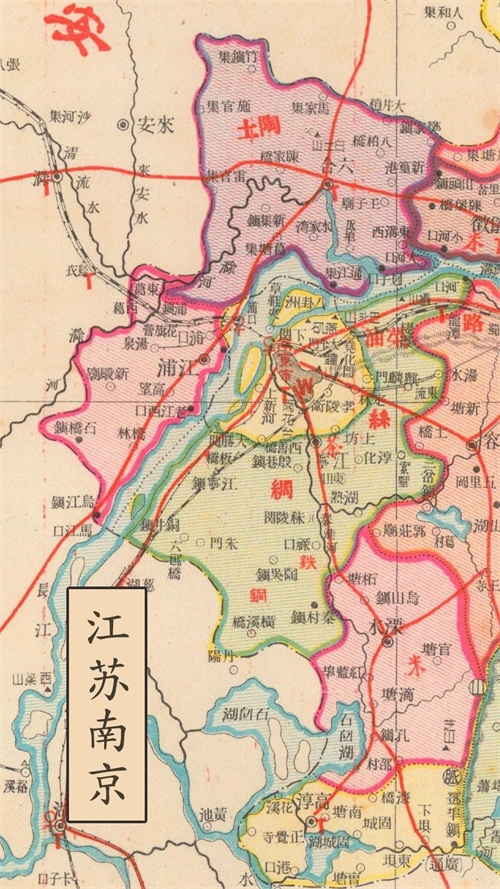 这幅1937年的《江苏明细图》为我们展现了当时江苏的各个城市和乡村地区的景象。