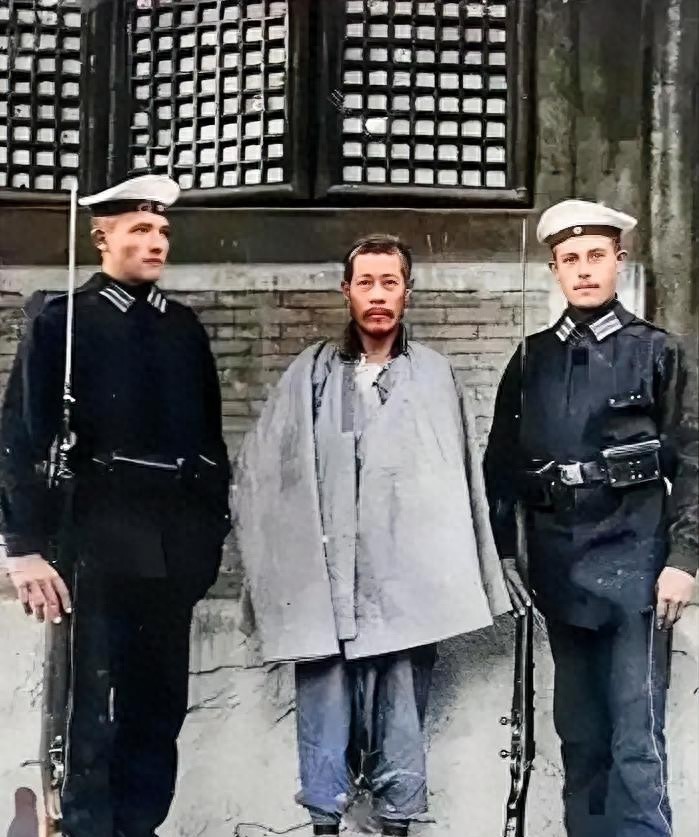 1900年神机营章京恩海在被德军处决前照片,面对死亡没有一丝恐惧