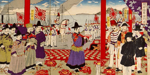 所以明治维新后的日本也亦步亦趋走上了西方殖民者的老路,在光绪二年即1876年,日本依靠西方的先进武器入侵朝鲜,并迫使朝鲜签订了《江华岛条约》。