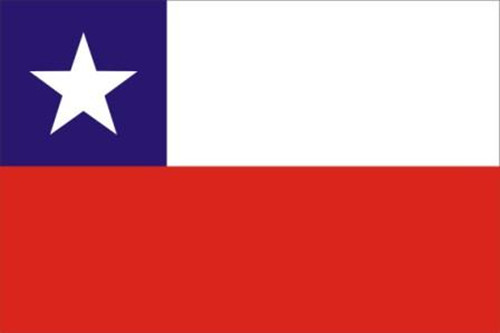 智利国旗启用于1817年10月18日,国旗呈长方形,长宽之比为3:2。旗面由蓝、白、红三色组成。上半部左角为蓝色正方形,其中央绘有一颗白色五角星。右侧为白色长方形。下半部为红色长方形。白色部分等于红色部分的2/3。红色象征为了智利的独立和自由,为了反抗西班牙殖民军的统治,在兰卡瓜英勇牺性的烈士鲜血。白色象征安第斯山高峰的白雪。蓝色象征海洋。