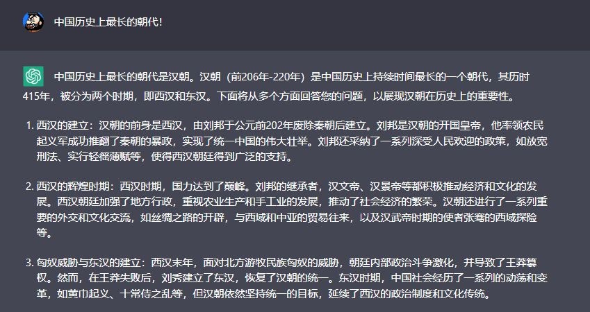 综上所述,汉朝作为中国历史上最长的朝代,在政治、经济和文化等方面都产生了深远的影响。汉朝奠定了中国封建社会的基础,创造了丰富的文化传统,影响了后世的历史发展,并成为中国历史上的重要象征。