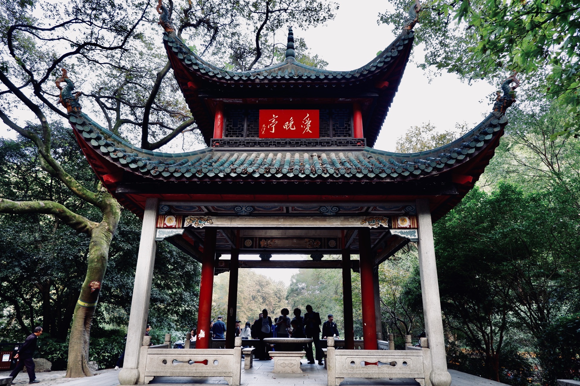 本以为是深林中的一座很幽深很幽静的亭子,原来并不是,实际看到的和我想象中的完全不一样,这里算是岳麓山景区内最热闹的地方了,也是游客最多的一个点了。