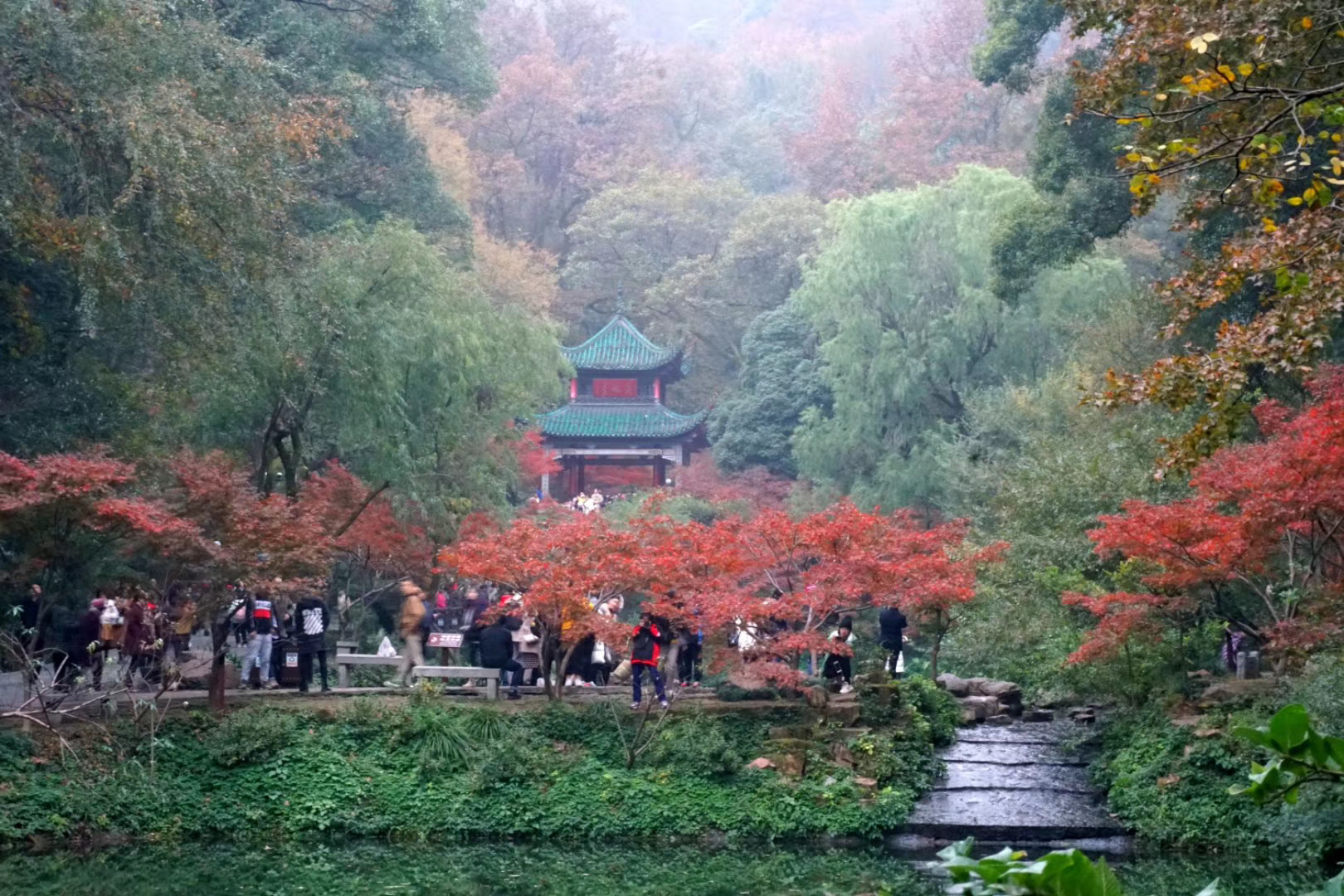 明媚的爱晚亭,斑斓的岳麓山和冬雨后的朦胧。虽然天气有些清冷,但是来的人还是挺多的,诗情画意的秋天,爱晚亭的枫叶红了,还不来打卡。