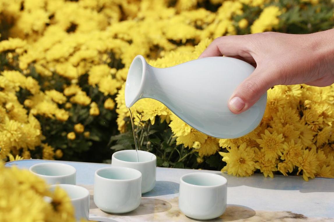 酿菊花酒,早在汉魏时期就已经流行。菊花酿成的美酒,是延年益寿的佳品,具有明目、补肝气、安肠胃、利血、降血压、治头昏、减肥等功效。据民间传说,在重阳节饮菊花酒,还能辟邪祛灾。