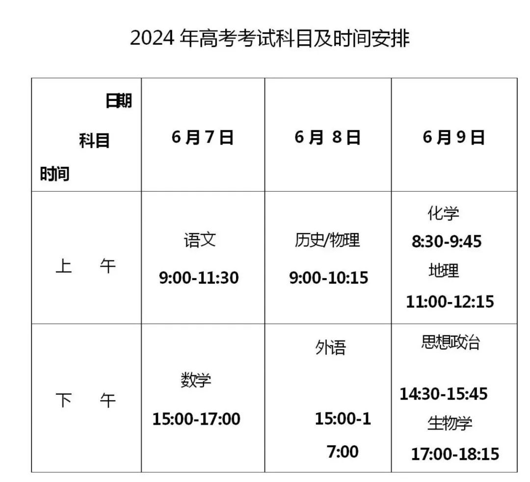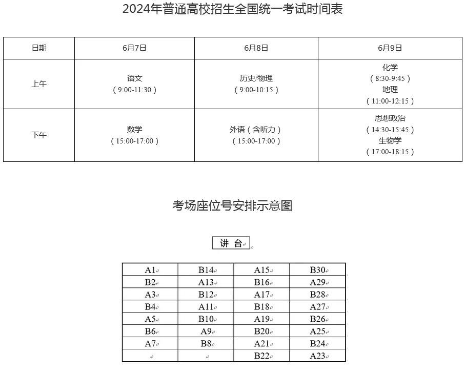 2024年普通高校招生全国统一考试将于6月7日至9日举行。