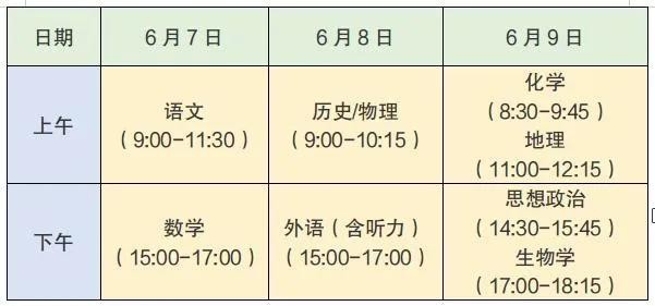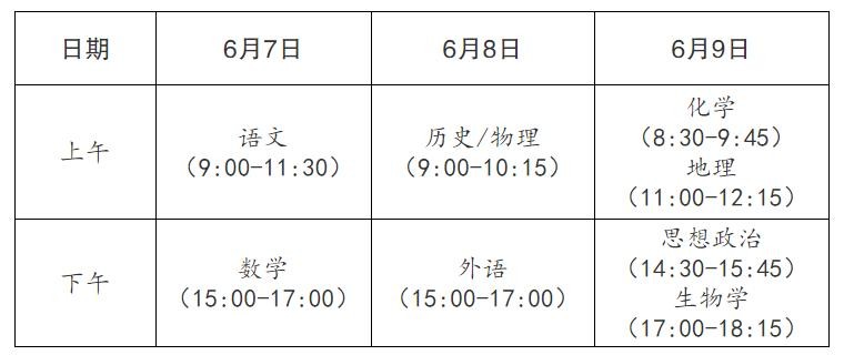 高考时间安排