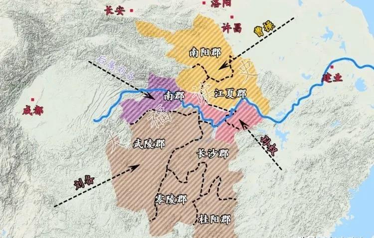 由此可见,孙权借给刘备的荆州肯定不是整个荆州,甚至连一个完整郡的地盘都不到。按照当时的势力来看,孙权借给刘备的最多只能是南郡或者江夏郡的一部分地盘。