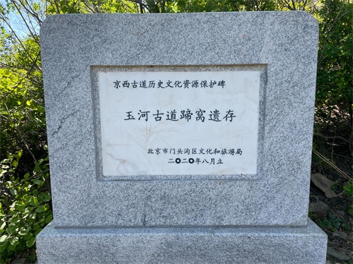 古道入口的右手边,立有两块标识碑,两块标识碑均是门头沟文旅局设立的。一块是京西古道玉河段——京西古道历史文化资源保护碑,一块是京西古道玉河段介绍。
