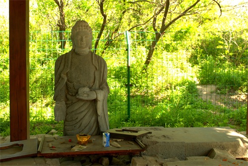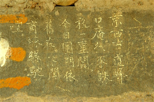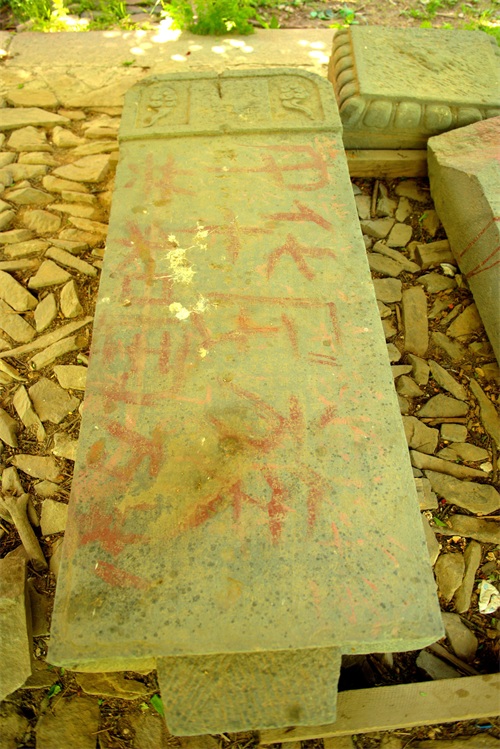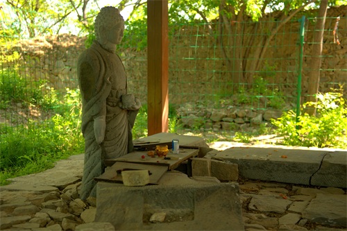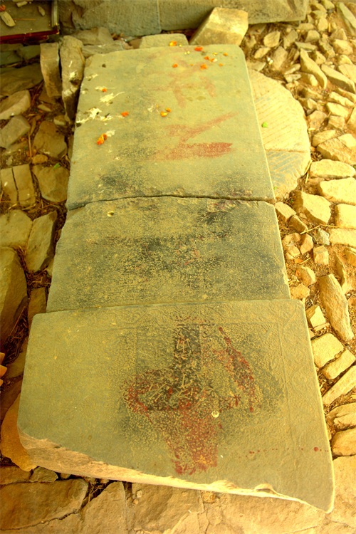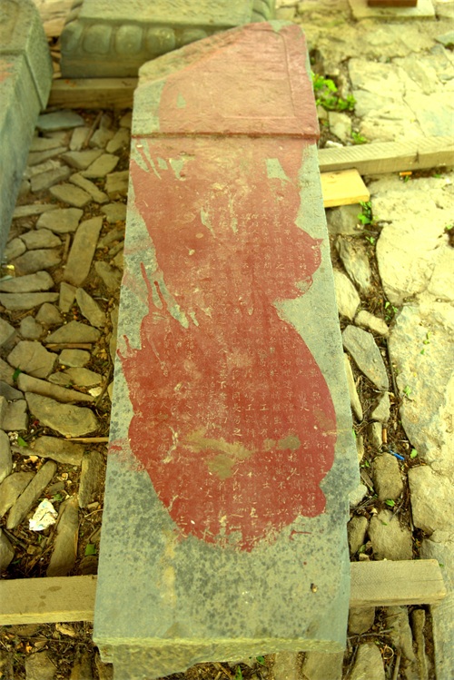 峰口庵的西侧有一块平地,就是当年峰口庵庙堂遗址和马王庙遗址。可见遍地古代石匾石碑,年代各异,大都已经被损毁,且碑上的文字已经很多不可辨认。还立有一座观音像,接受本地及游人的香火。