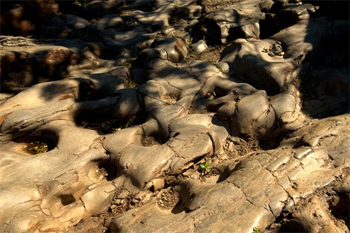 北京自金国海陵王迁都北京之后,就渐次成为华北的中心。据说,北京最初的建都者,就是看到西山的拱护形状后,认定此处是“神京右臂”,便定都于此。帝王之都,将相之侧,供需关系急速上升,四面八方的物资源源不断地输送到北京,道路的运载压力便不断加剧。在经济能力和科学技术尚不发达的年代,只能靠驴、骡子和马这些牲畜承载重托和背负使命,在陡峭崎岖的古道上,年复一年,日复一日的奋力前行。铁蹄的撞击,石头上开出耀眼的花朵。近千年的岁月,那些形象逼真、散乱有序的深深蹄窝,成了历史凿刻在大地上最深刻的印痕……。