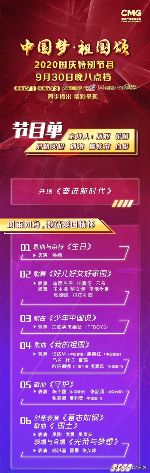 央视国庆晚会节目单来啦!热巴任嘉伦、朱一龙杨紫、TFBOYS