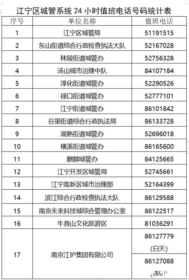 南京江宁城管推出 24 小时服务热线,这 18 个号码请收藏