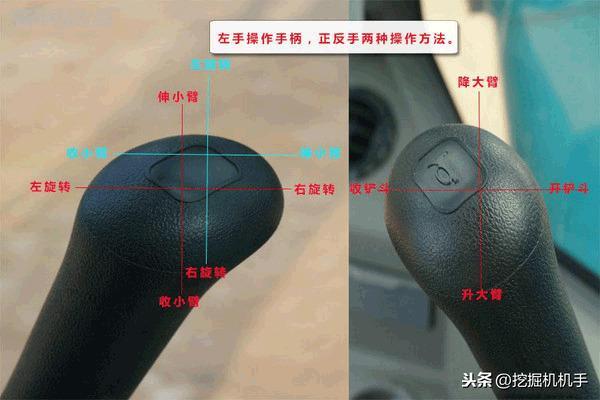 此外挖掘的大小臂、铲斗伸缩的动作都是利用这两个手柄,随着摆动位置的不同,动作速度及力度都会有变化。由于挖掘机型号及品牌的不同,有的挖掘机手柄附带有瞬间增加功率的功能按钮,比如在吊装时可以增加大小臂的力度,装车作业时提升大臂速度。