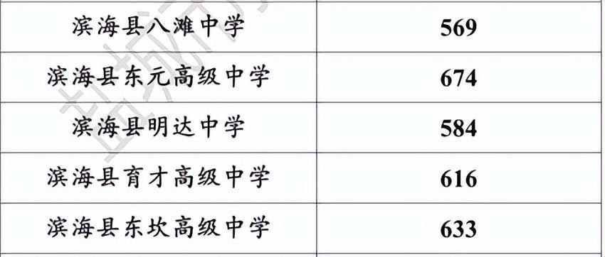 再来看看2025年盐城市各县(市、区)普通高中(第二批次),我们以滨海县为例,滨海县现有四星级高中2所,江苏省滨海中学、滨海县八滩中学,按照道理来说,在全县成绩排名靠前的应该是这两所,因为这两所高中是四星级嘛,不然划分学校“星级”的意义在哪里?可实际情况却是,滨海县八滩中学作为滨海县第二批次普通高中唯一的一所四星级高中,名字虽说是排在第一位,但却与刚成立两三年的“毛头小伙”一起招录,录取分数线也是最低的,滨海县八滩中学569,滨海县东元高级中学674,滨海县明达中学584,滨海县育才高级中学616,滨海县东坎高级中学633,另外的4所中学仅仅是因为身处县城这一条理由,就足以秒杀农村高中的滨海县八滩中学。