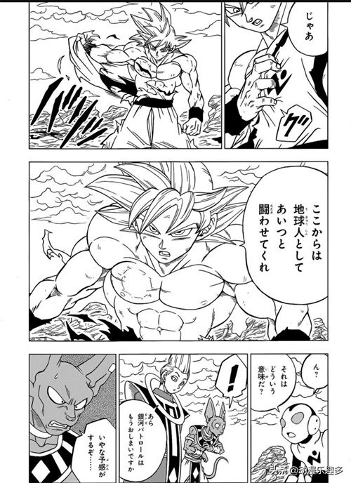 悟空将有着银河巡警标志的上装给撕了,想以地球人的身份将魔罗打败,维斯和比鲁斯被悟空这一举动惊到了。同时,比鲁斯也表示自己有一种很不好的预感。