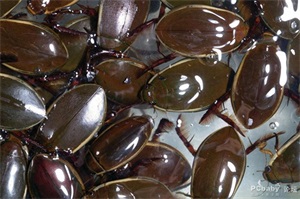 水甴曱 说到甴曱,肯定很多人不知道是什么,但是说到蟑螂,全部人都会皱起眉头。但是这水甴曱(也就是水蟑螂),在广东居然不属于虫子类,反倒被归纳到水产类,还有个别名叫龙虱。虽然看着很像蟑螂,不过水甴曱是一种水生昆虫,对防治高血压、肥胖症、肾炎有很好的疗效。一些惧怕吃水甴曱的人,也是用椒盐水甴曱来让自己接受这种古怪得近乎恐怖的食物,因为椒盐的香味,能让人暂时忘记它的骇人。想要尝试到它的美味,就需要掌握以下手法:先将其背上的两只硬翅膀剥掉,再用拇指和食指轻轻旋动它的头部,以去掉其肠肚,而且力度不能太大,否则把线状物扯断了,肠肚还留在体内,吃下去便有异味。