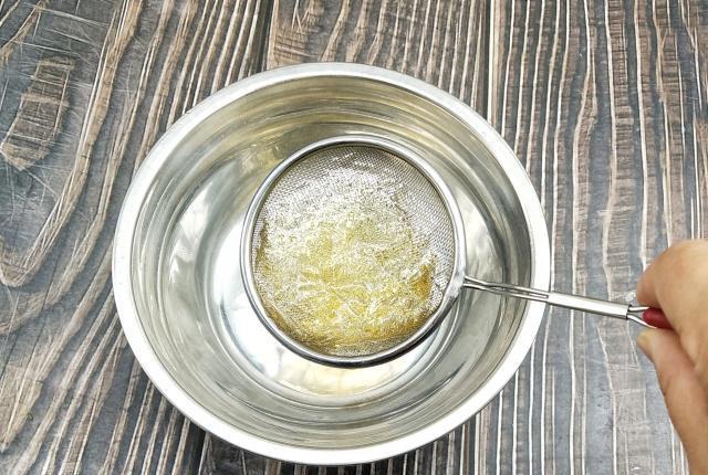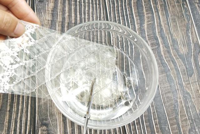 4、泡软之后,把吉利丁片捞出来,放入碗中