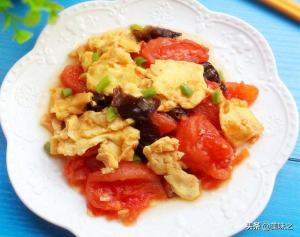 西红柿3个、鸡蛋3枚、姜15克、木耳20克、葱15克、油适量、盐1茶匙、糖2茶匙、蚝油1茶匙、生粉1茶匙。