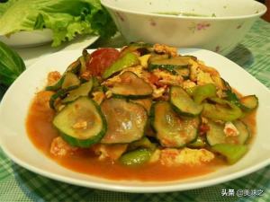 8、因为鸡蛋本身已有鲜味,就无需再另加味精了。西红柿的汁水被炒出来,将黄瓜和鸡蛋均匀包裹后,即可出锅了。