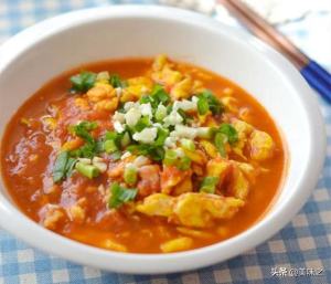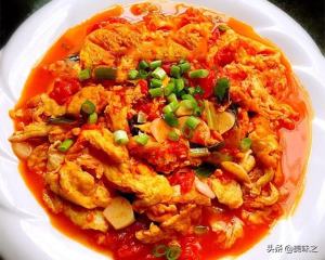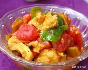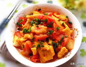 西红柿两个、小鸡蛋三个、鲜青豌豆50克、精盐5克、白糖15克、烹调油25克。