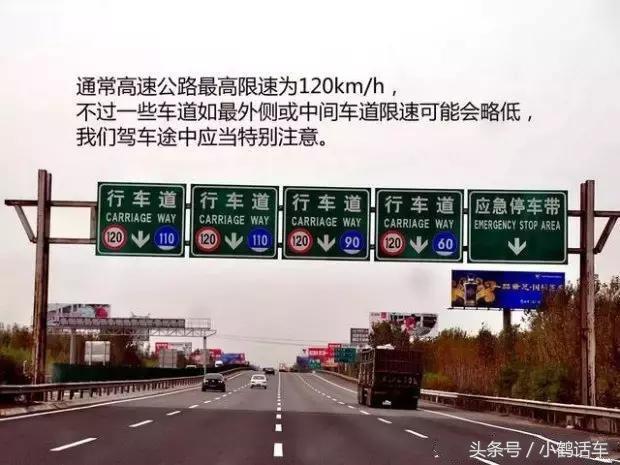 高速路对于每一条车道的限速,路标都会标出,如下图所示: