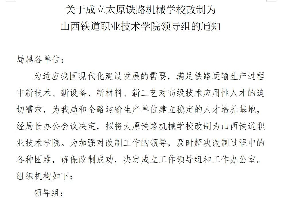 2.太原铁路机械学校于2000年经山西省教育厅批准,开办了7个专业的高职班。当时是5年学制的,也就是从上到下,认为最晚2005年太原铁路机械学校能升格为高职院校。可以想象在当时升高职只是个时间问题,可能谁也没想到成了历史问题。那后来呢。。。。上点图吧。