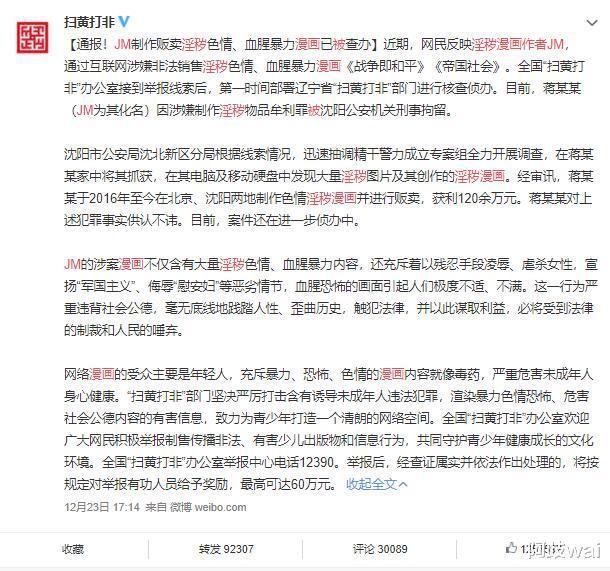 此外还有大快人心的猎奇漫画家JM被抓……等等。