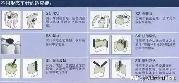 不同形态车针适应症状