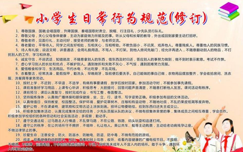 记得上小学的时候,老师每隔一段时间就会跟学生们强调一遍《学生行为规范手册》,里面有关于学生一举一动一言一行,穿衣打扮的一些具体规定,从小学开始学这些规定,然后慢慢养成习惯,在以后的学习和生活中都更有规则意识。