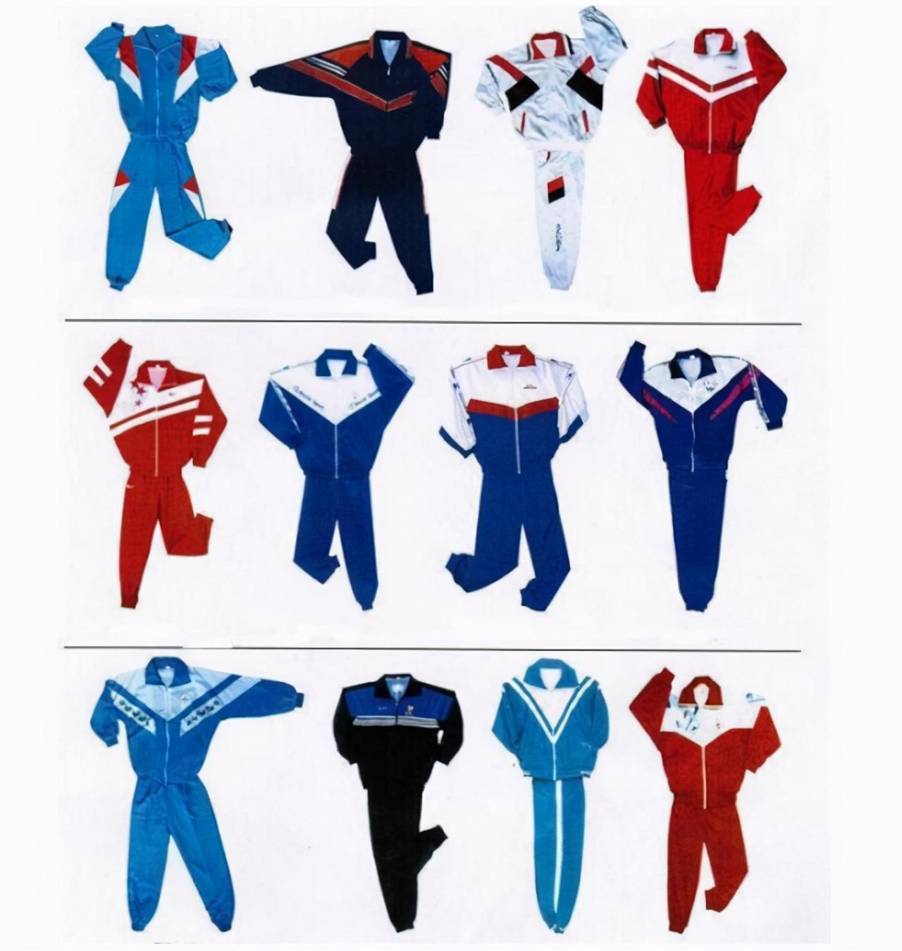 下图就是中国校服第一个阶段的样式,从图中可以看到主要以红白蓝紫为主,色彩非常鲜明强烈,以现在的眼光看上去有一些土土的,尤其是“万红丛中一点白”那一系列的校服,简直让人不忍直视,穿上长得再清秀的中小学生,都一下子打回原形。