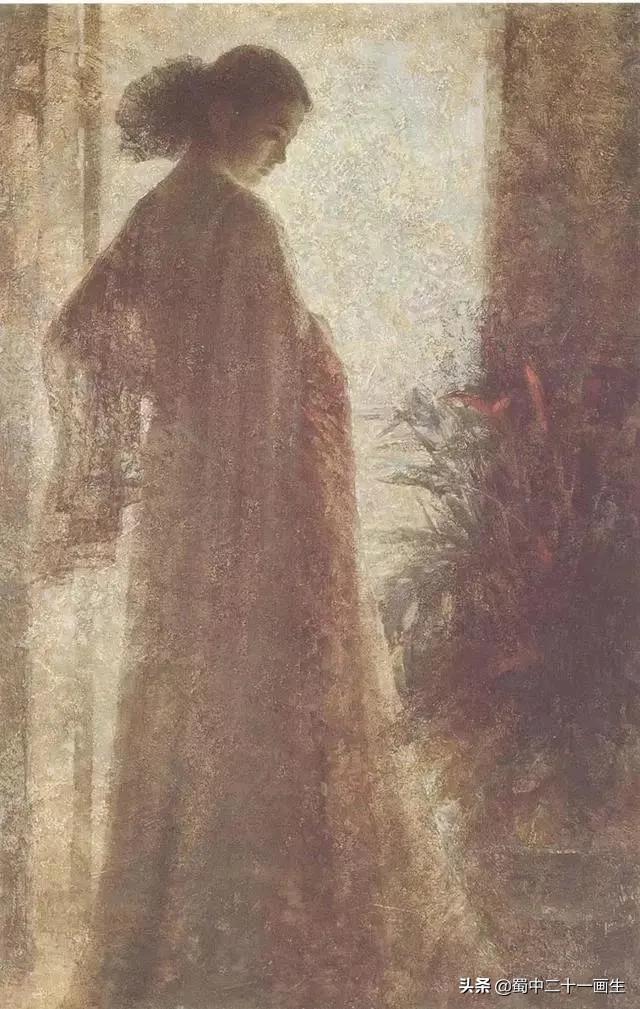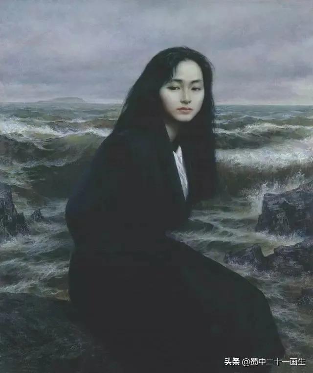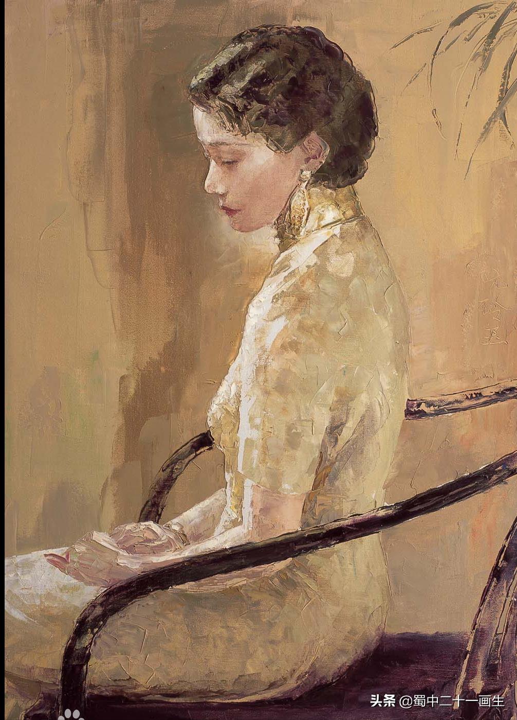 这一幅《海韵》,是画家向更深更广的领域探索的新成果。画中成熟但年轻的知识女性神情凝重、沉静、若有所思,似乎是在思索人生或追缅逝去的情感。