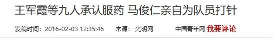 “王军霞等九人承认服药 马俊仁亲自为队员打针”——光明网