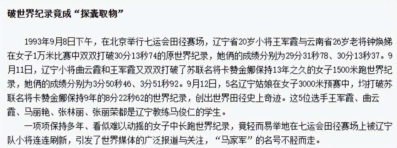马俊仁这个名字在中国体坛中也算是风云人物了,而由他组成的“马家军”更是打破了多项记录。