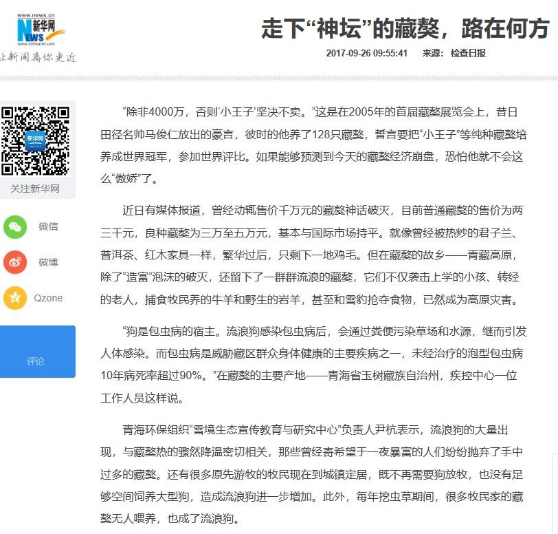 “走下“神坛”的藏獒,路在何方”——检察日报