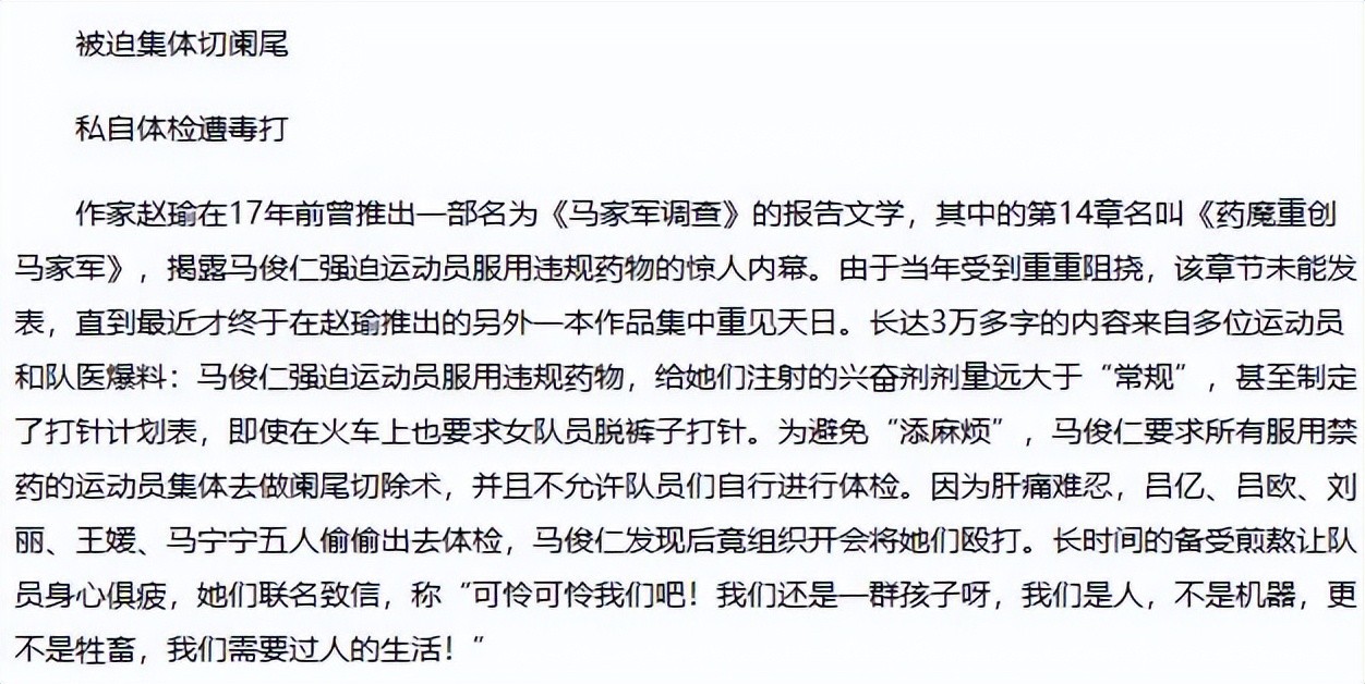 "马家军"爆料:被迫集体切阑尾 私自体检遭毒打”——广州日报