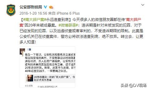 2016年1月,网上流传该案将过20年的追诉期,对此公安部刑侦局还曾发微博辟谣相关说法,表示将“依法追查到底”。