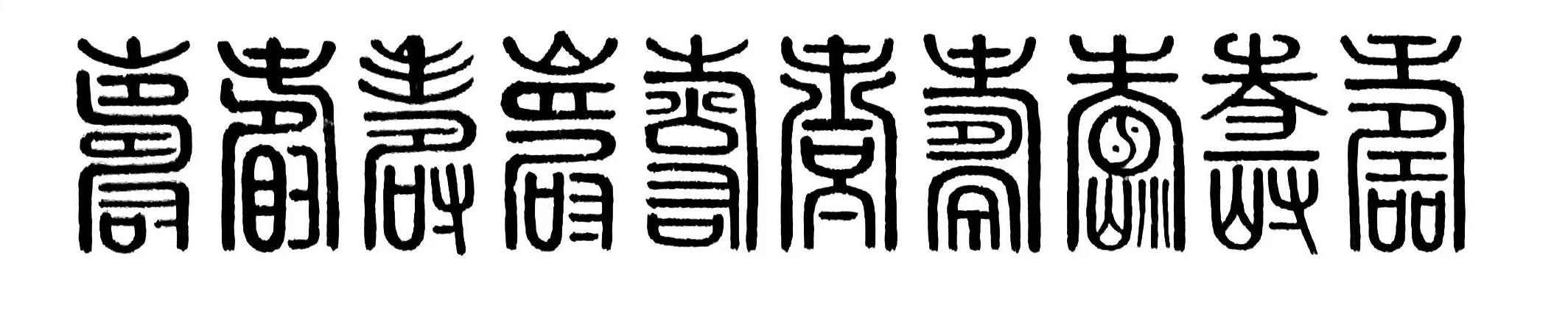 广东茂名籍书法家梁土荣先生创作的书法作品《百寿图》,以不同形体的100个篆体“寿”字组合而成,排列得整整齐齐.书写得端端正正,产生一种独特的艺术效果,给人以富丽堂皇、意蕴深长的感觉,深受广大书法爱好者青睐,也成为后辈馈赠老人家珍贵的生日礼物。以下为梁土荣的篆体书法作品《百寿图》的局部展示: