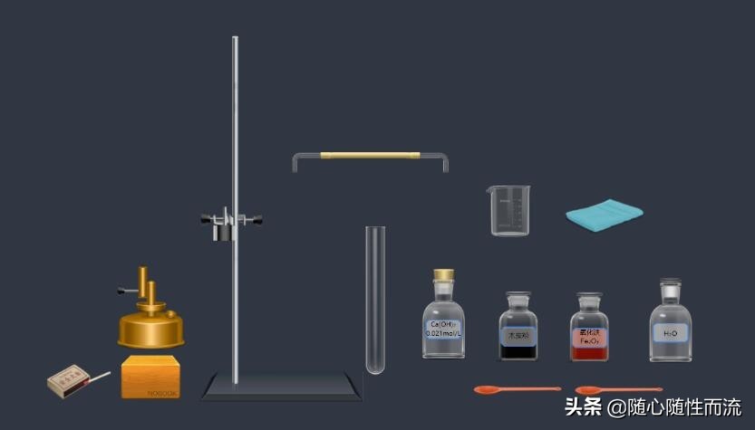 药品:木炭粉、氧化铁、氢氧化钙溶液、蒸馏水。