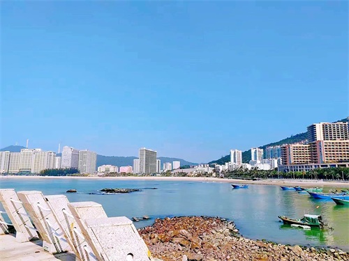 全岛沿岸点缀着大角湾、十里银滩、北洛湾、钓鱼水库等12处风景各异、世界一流的天然海滩,面积约占全岛陆地面积的1/5。岛上年平均气温22.3℃,四季如春,海浴时间长达8个月